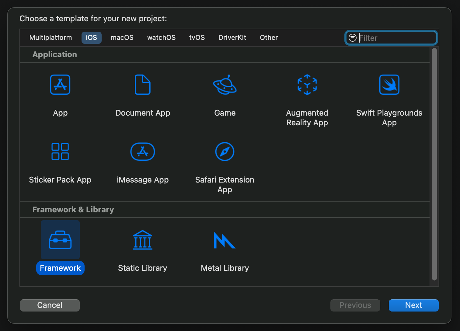 - Dynamic Framework: 리소스를 스스로 가지고 있거나 전체 소스를 제공 (framework로 프로젝트 생성시 default)