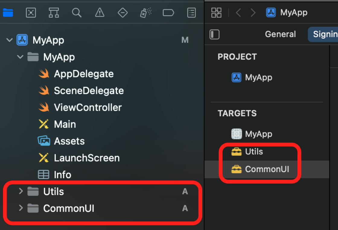- Utils, CommonUI가 한 프로젝트의 Target으로 관리되고 있으므로, Utils와 CommonUI를 프로젝트로 빼고 마치, pod install하면 생겨나는 Pods 프로젝트처럼 변경할 것