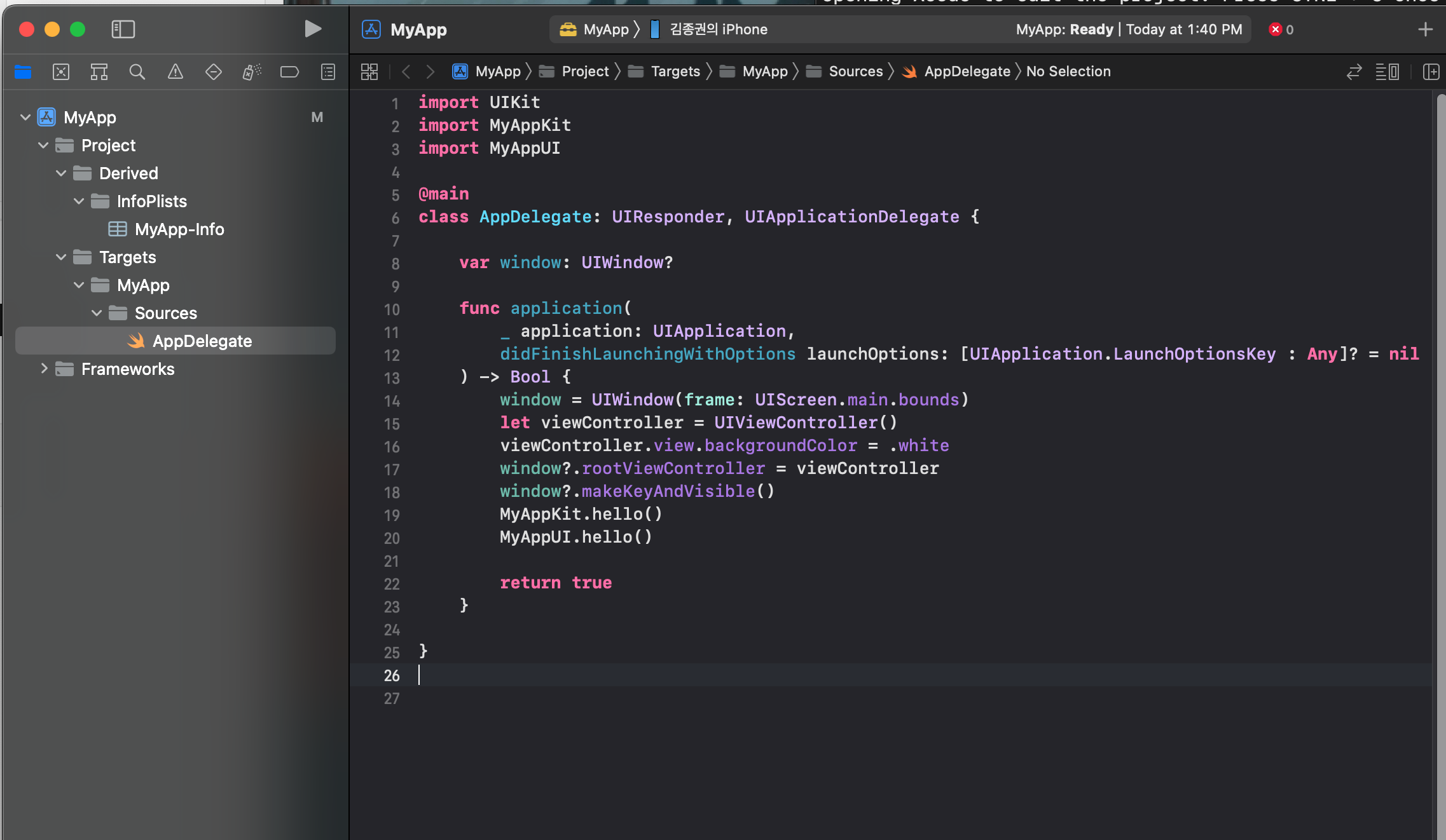 - import MyAppKit, import MyAppUI는 예제로 생겨난 것 (삭제할것)