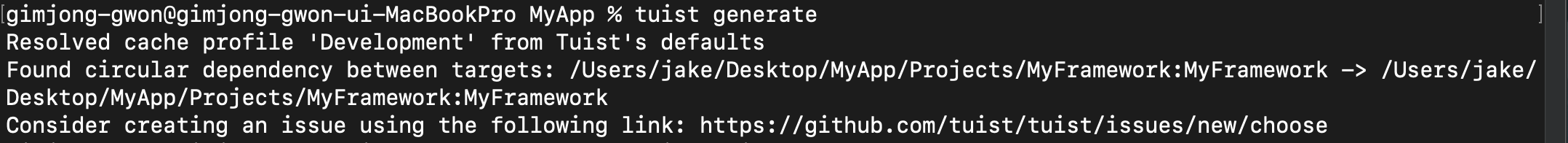 cf) Tuist를 사용하면 Dependency가 Circular형태면 사전에 generate 오류가 발생하기 때문에 dependency 관리도 용이