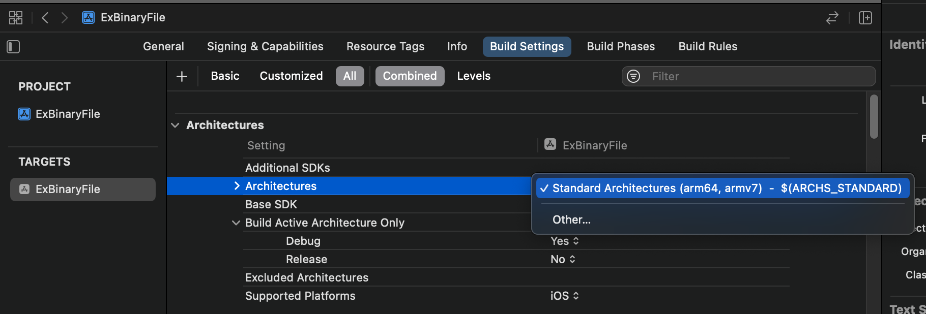 - Xcode > Project > Build Settings > Architectures