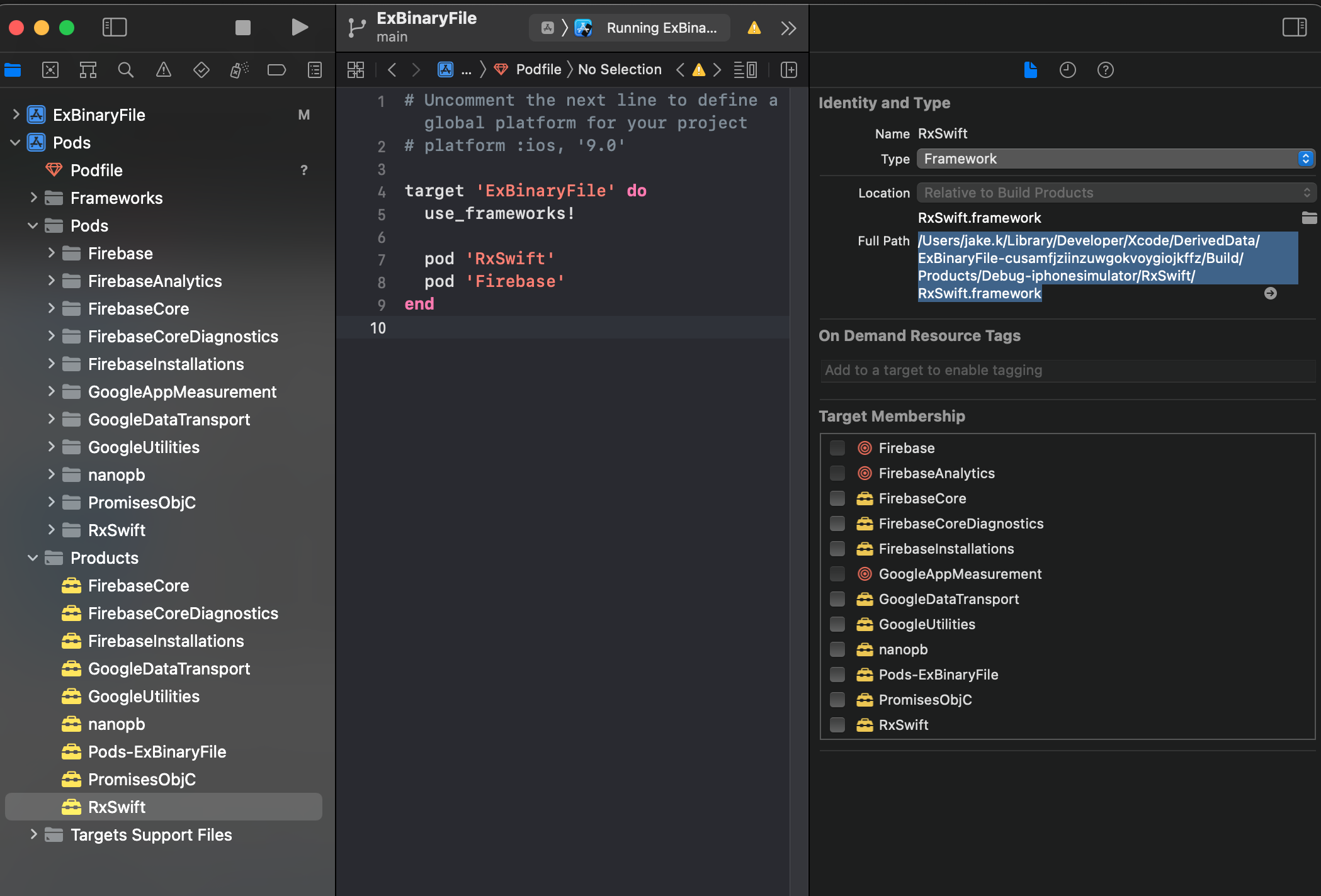 file /Users/jake.k/Library/Developer/Xcode/DerivedData/ExBinaryFile-cusamfjziinzuwgokvoygiojkffz/Build/Products/Debug-iphoneos/FirebaseCore/FirebaseCore.framework/FirebaseCore