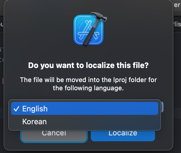 - InfoPlist.strings 하위에 2개의 파일이 생긴것을 확인