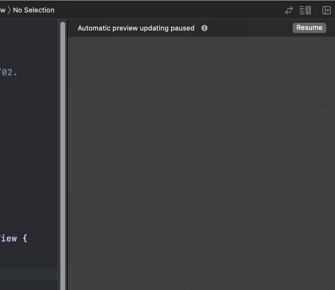 - Xcode를 키면 preview가 paused된 상태이므로 resume 싫애 (cmd + option + P)