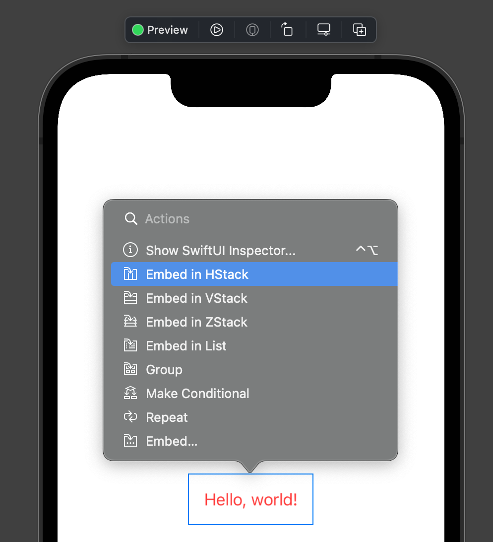 - Preview에서 cmd + 클릭 > Embed in Stack을 사용해도 되지만,