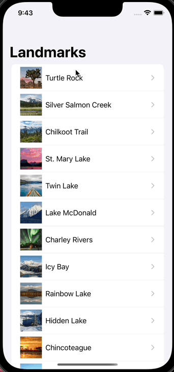 .navigationTitle("Landmarks") // <-