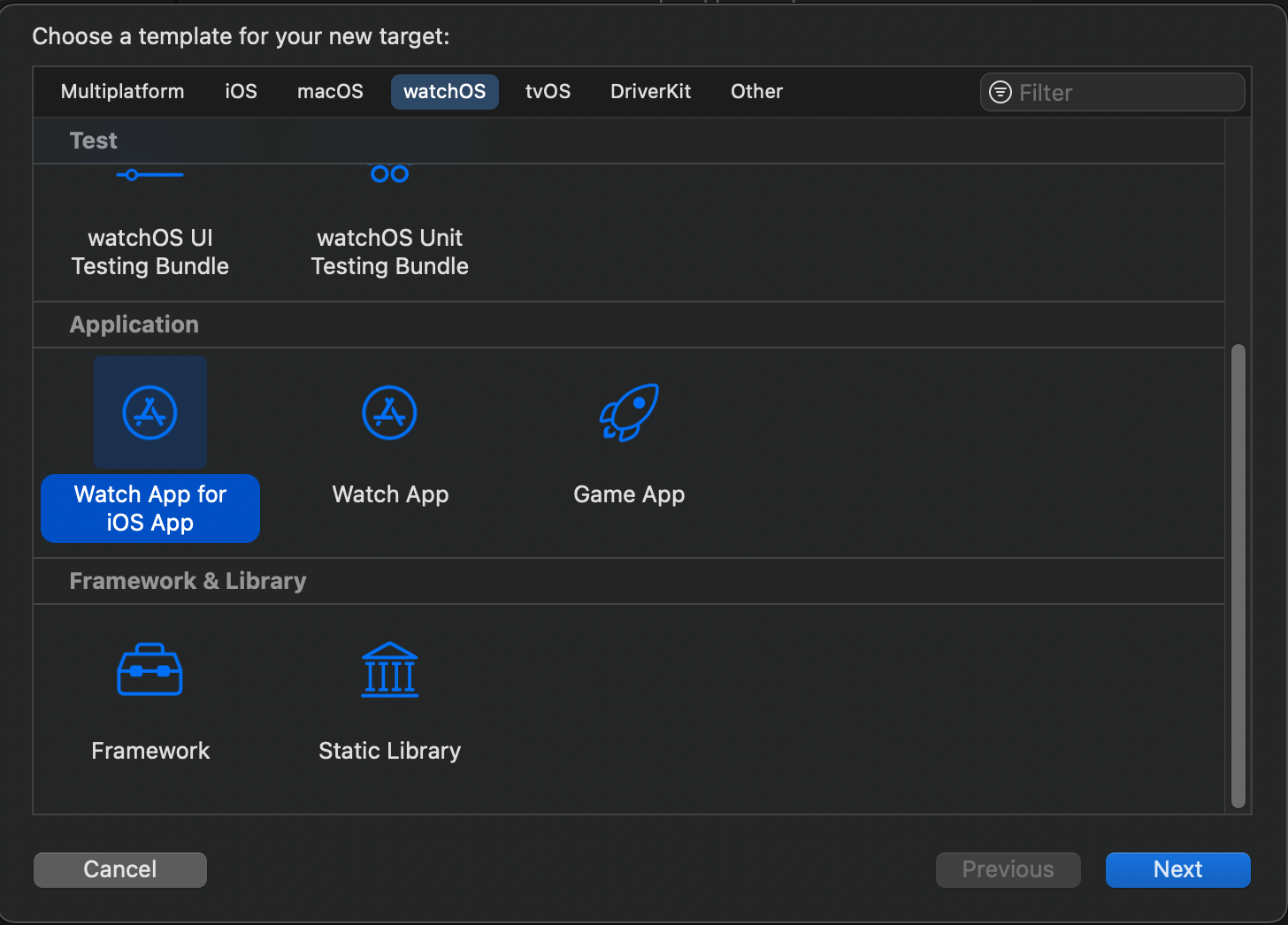 기존 iOS앱에 애플 워치 앱 타겟 생성