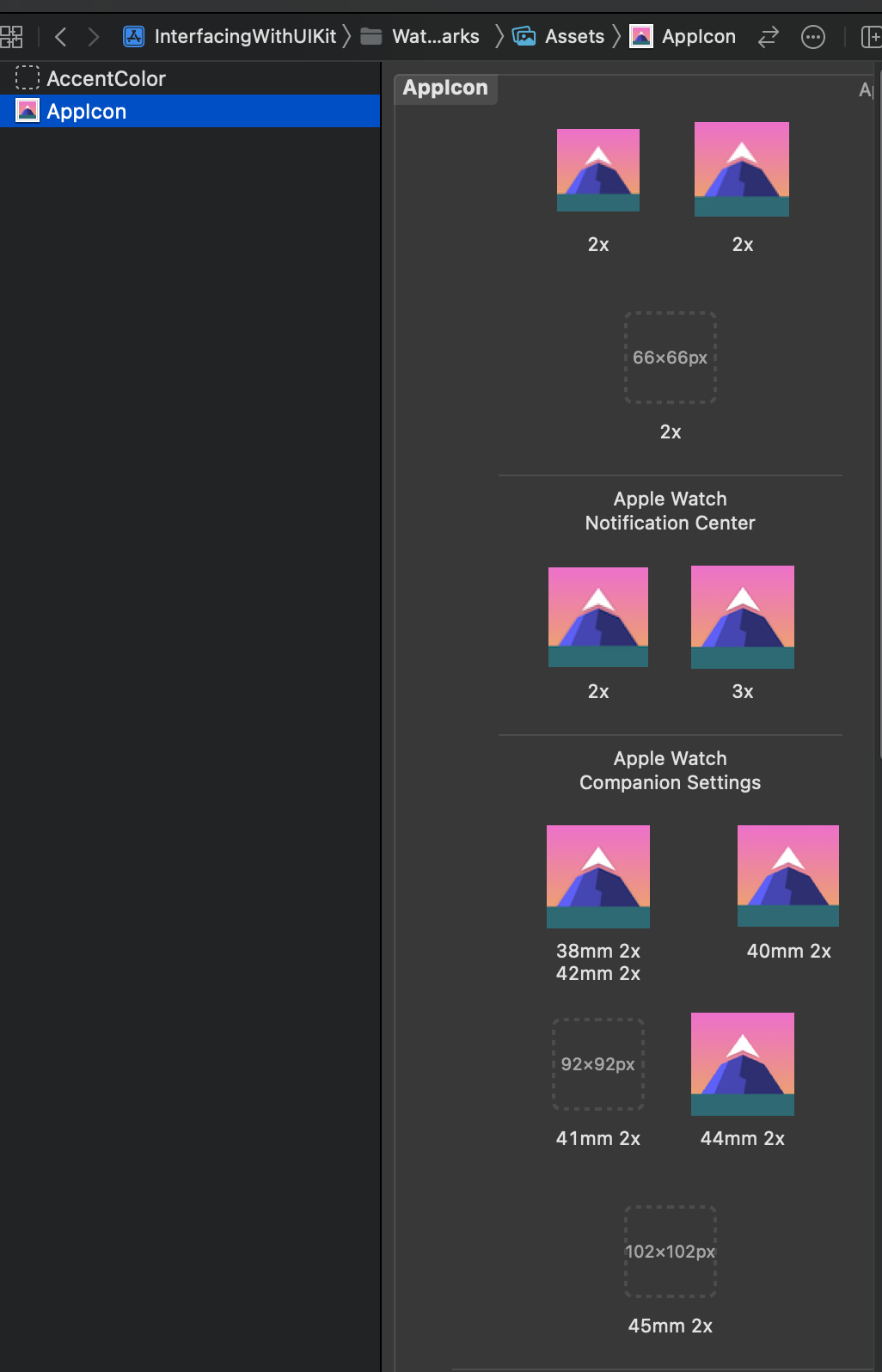 - WatchLandmarks WatchKit Extension 폴더 - 애플워치에 사용되는 화면들이 위치