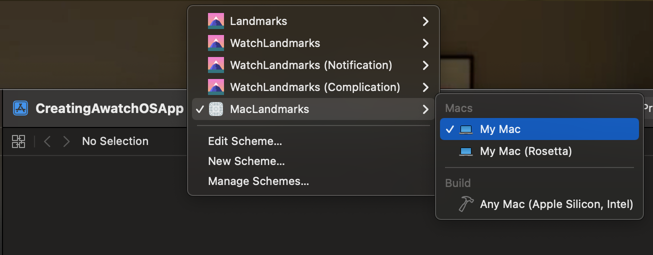 - 이전 포스팅 글에서 알아본 watchOS 앱과 마찬가지로 이미 있는 LandmarksApp를 사용할것이기 때문