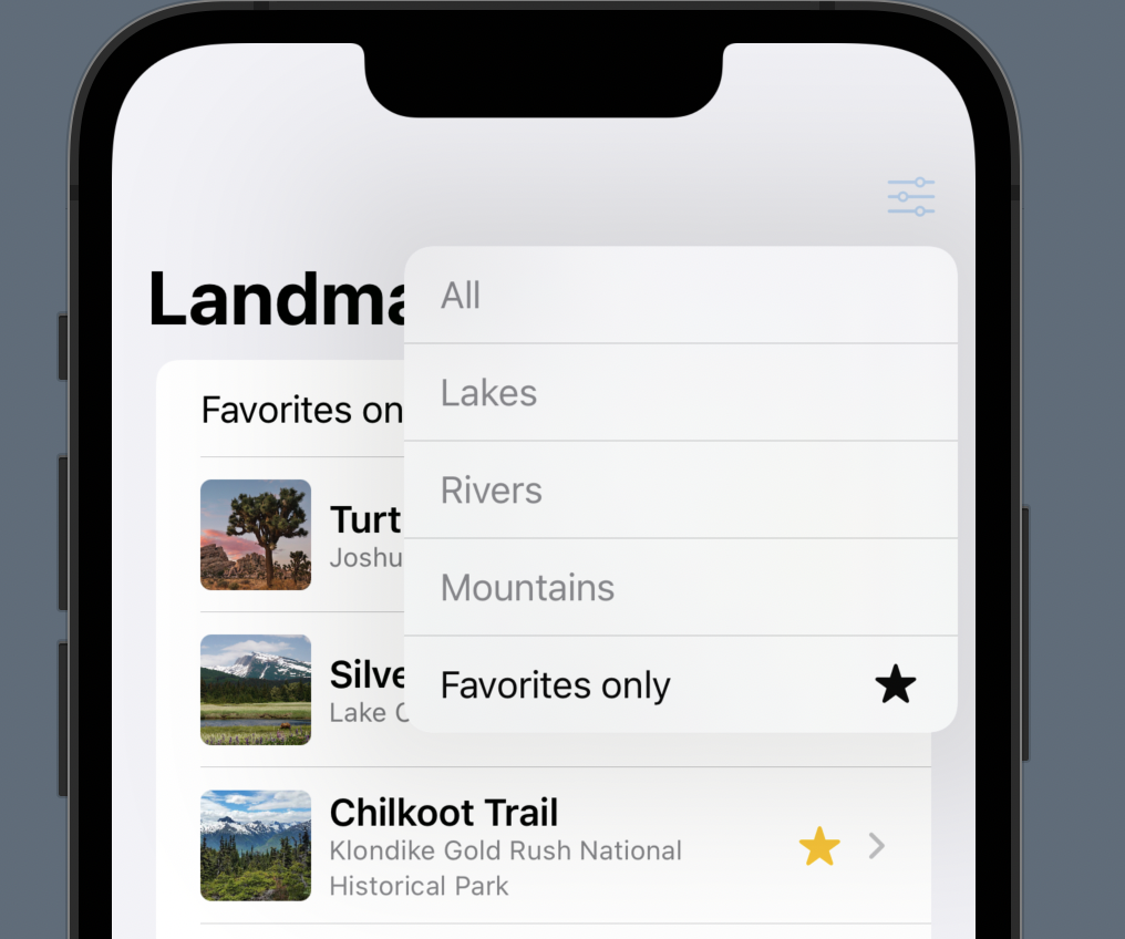 let title = filter == .all ? "Landmarks" : filter.rawValue