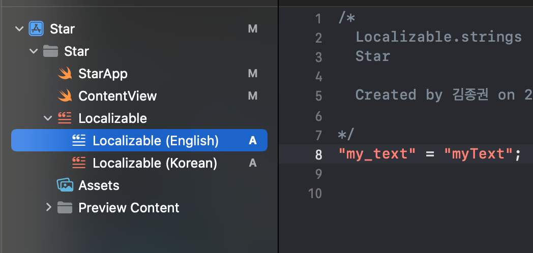 - UIKit처럼 NSLocalizedString을 따로 쓰지 않아도 편리하게 적용이 가능
