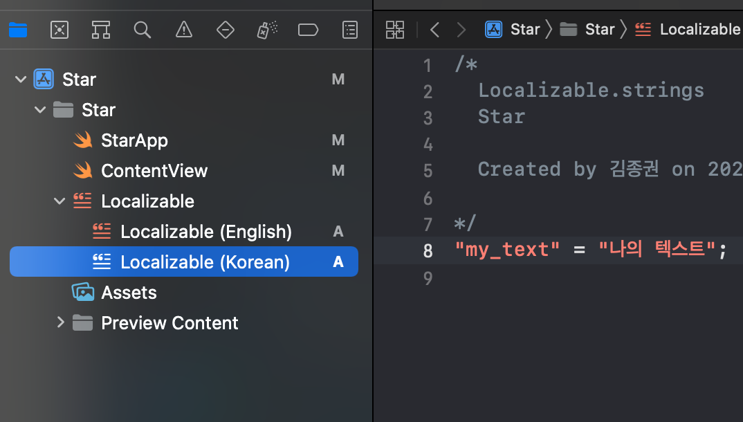 - UIKit에서 Localization을 사용할 땐, String key값을 NSLocalizedString에 넣어서 사용