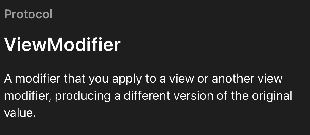 - SwiftUI에서는 View들이 Class가 아닌 Struct에서 사용할 수 있기 때문에 상속이 불가능하여, 대신 `Modifier`라는 개념을 정의