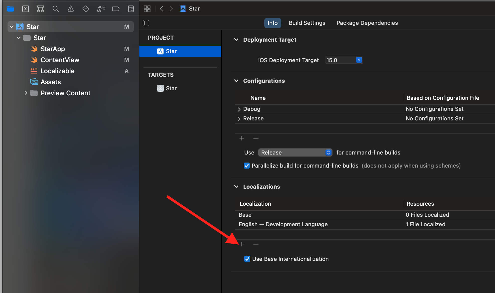 - Project > Localizations에 + 버튼을 클릭하여 지역화를 추가 가능