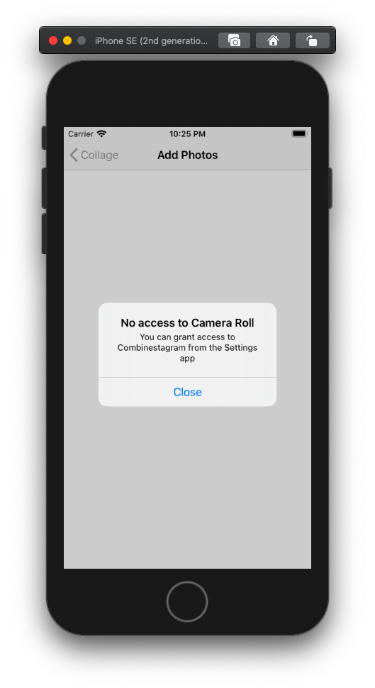 - 버튼을 클릭했을 때, 접근제한에 동의하지 않았으므로 메세지를 띄우고 -> "OK"버튼 -> alert dismiss -> popViewController