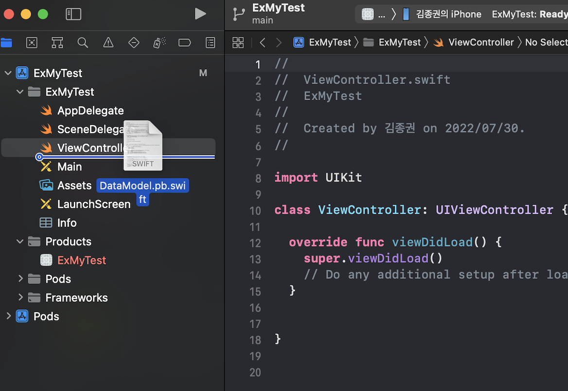 - DataMode.pb.swift파일을 보면 자동으로 import SwiftProtobuf가 되어있고, 데이터 모델이 자동으로 생성된 것을 확인 가능
