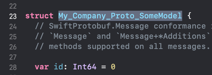 - option swift_prefix = "PB"로 사용하면 앞 패키지 "My_Company_Proto_SomeModel"로 사용하지 않고 "PBSomeModel"로 사용