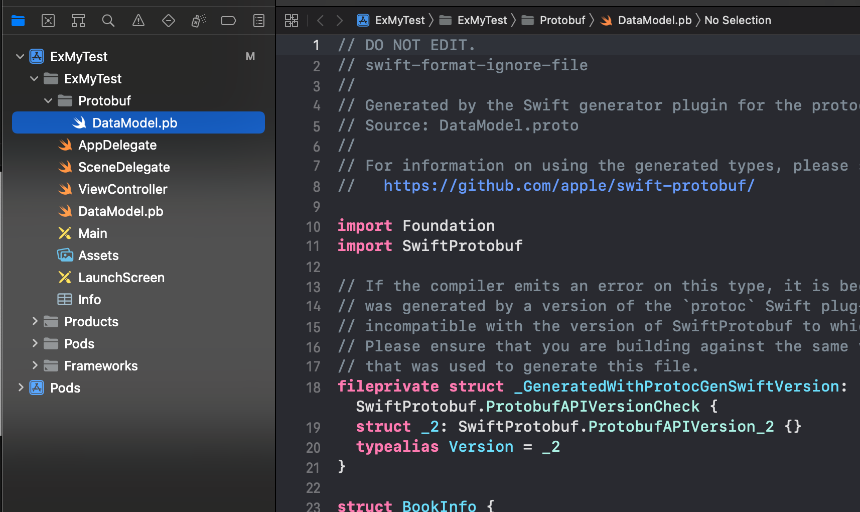 - 이전 프로젝트에서 만들어둔 DataModel.pb.swift 삭제하면 완료