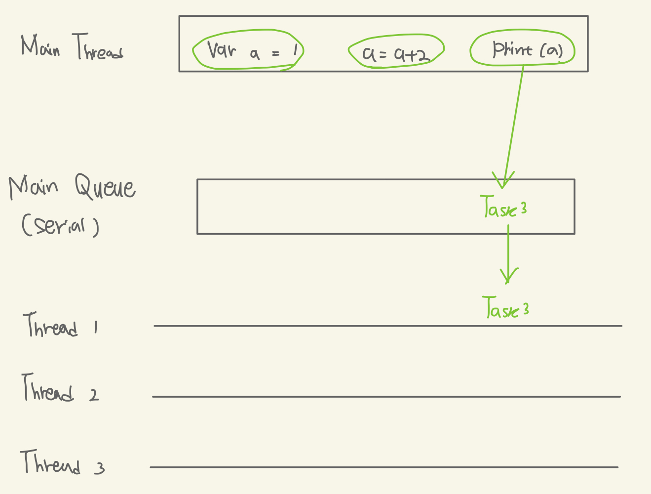 - 별도의 DispatchQueue 코드 없이 바로 코드 선언할 경우 (Serial Queue)