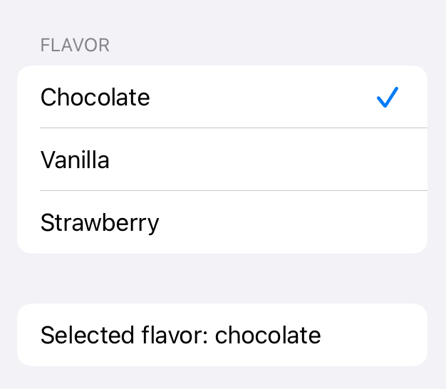 Text("Selected flavor: \(selectedFlavor.rawValue)")
