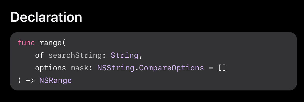 https://developer.apple.com/documentation/foundation/nsstring/1416849-range