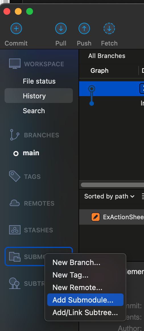 - source tree를 사용하여 submodule 추가 방법은 포스팅 글을 참고