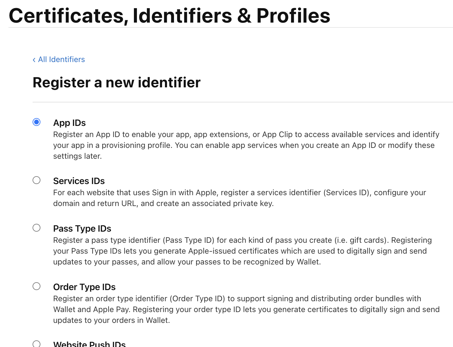 App IDs 클릭 > 생성