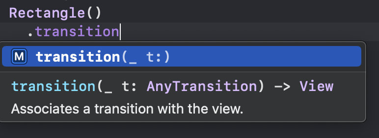 - 위에서 알아봤듯이 .transition(_:) 인수에 들어가는 값