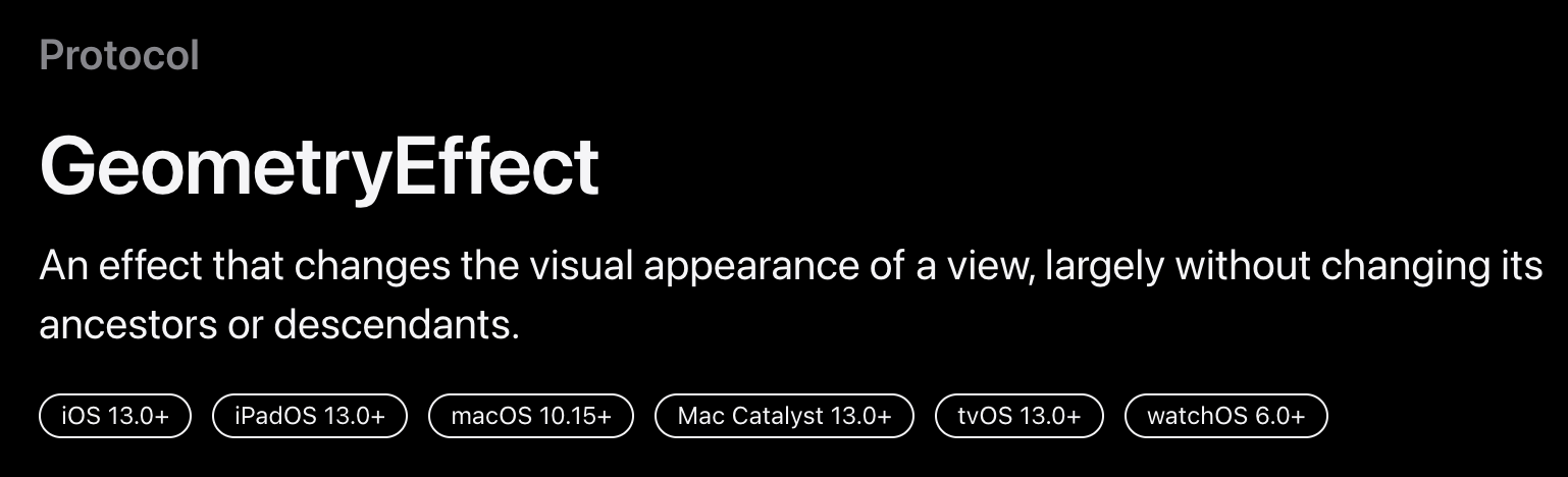 public protocol GeometryEffect : Animatable, ViewModifier where Self.Body == Never {