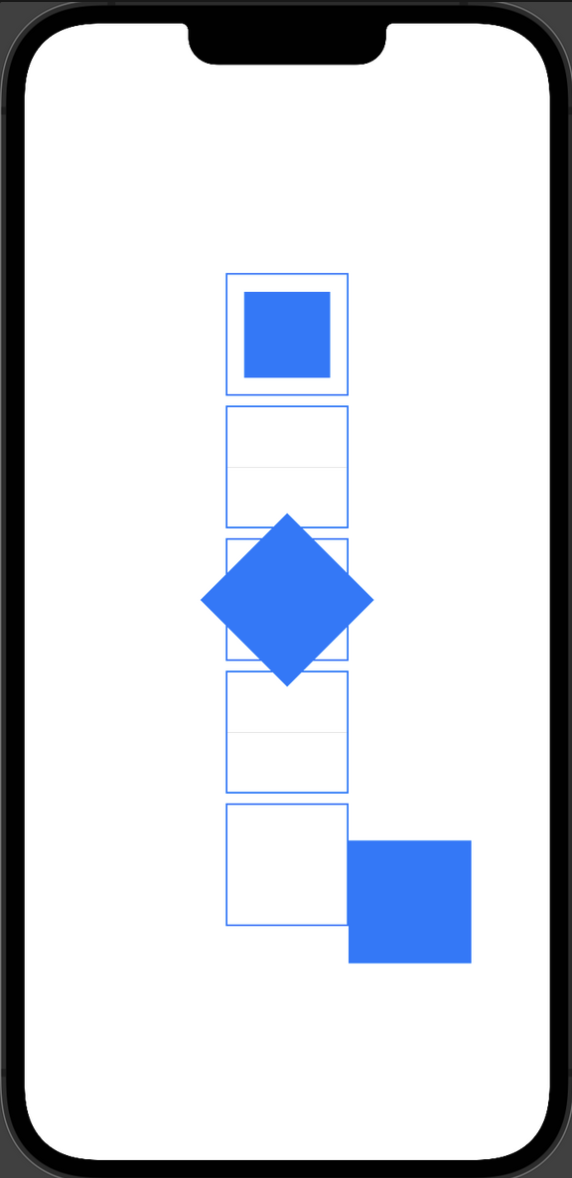 var body: some View { VStack { Group { TransformedShape(shape: Rectangle(), transform: myTransformation) } .foregroundColor(.blue) .frame(width: 100, height: 100) } }