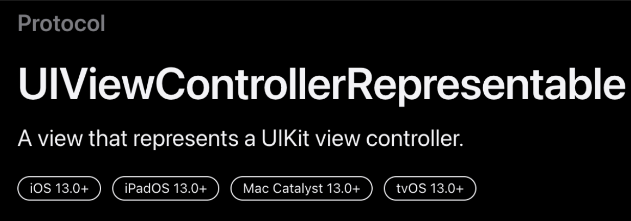 public protocol UIViewControllerRepresentable : View where Self.Body == Never {