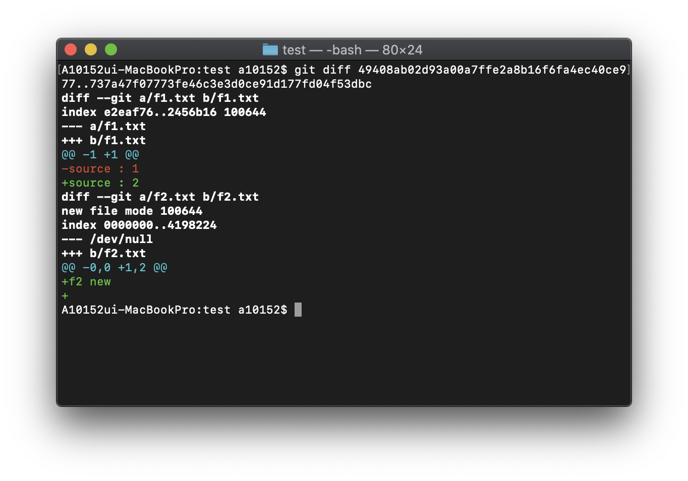 --- /dev/null : 버전 2에서는 파일이 없었는데, 버전 3에서 f2.txt가 추가된 것(+++b/f2.txt)