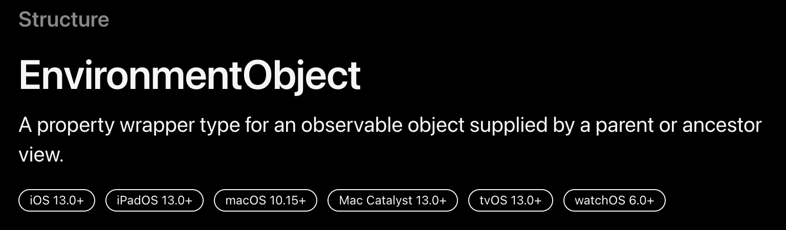 @EnvironmentObject var myObject: MyObservableObject // ObservableObject타입을 준수해야됨