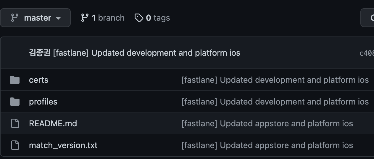 - Apple Developer에 Profiles도 생성되고 git repo에도 certs, profiles 생성