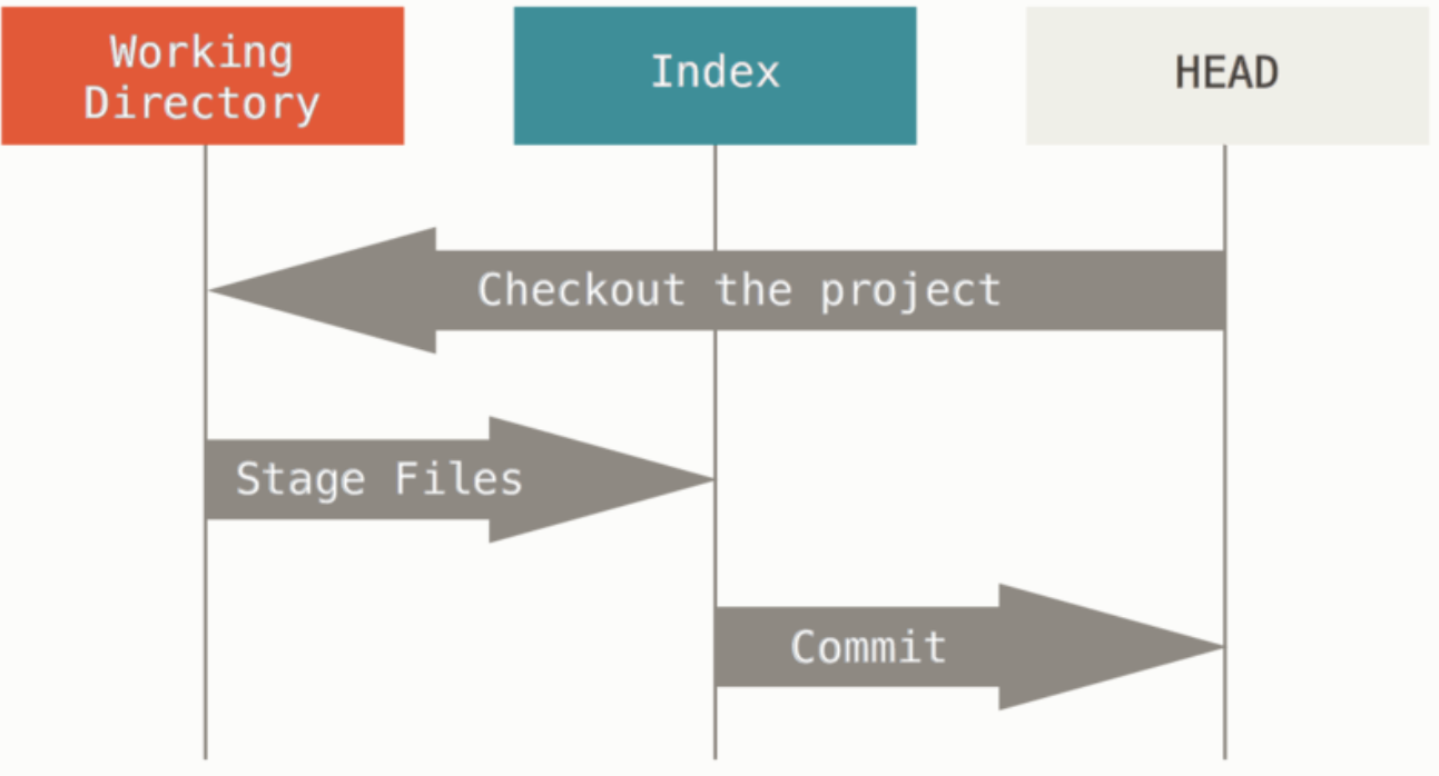 Git을 서로 다른 세 트리로 보고 컨텐츠를 관리하는 관리자라 하면 다음 세 가지를 관리