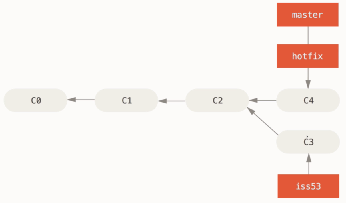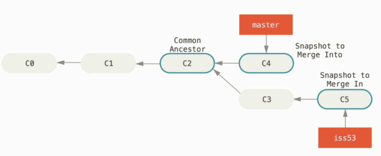 master와 iss53의 merge : 공통의 조상 찾음(C2) -> 3 way merge의 방법을 이용하여 merge