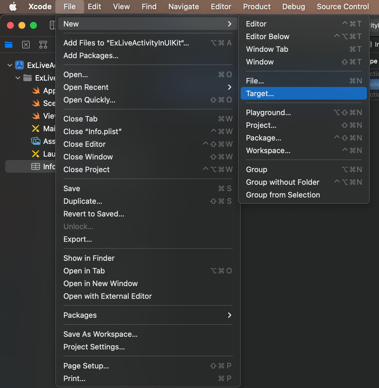 - Xcode에서 target 선택