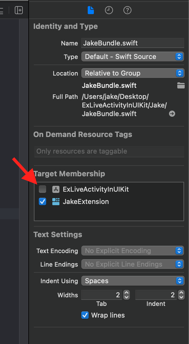 - 여기서 JakeBundle의 Target Membership의 UIKit 관련 타겟은 해제
