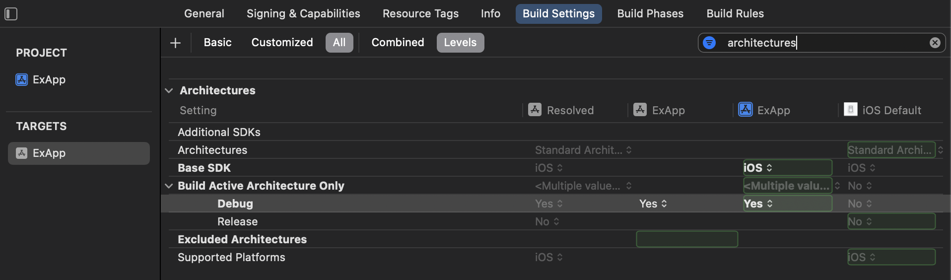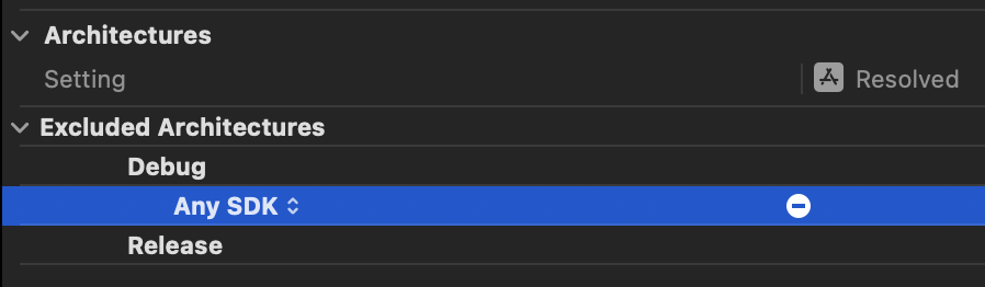 - 예전에는 Valid Architectures라는 옵션이 있어서 활성화하고 싶은 아키텍쳐를 나열했다면 현재는 제외하고 싶은 아키텍쳐만 적용