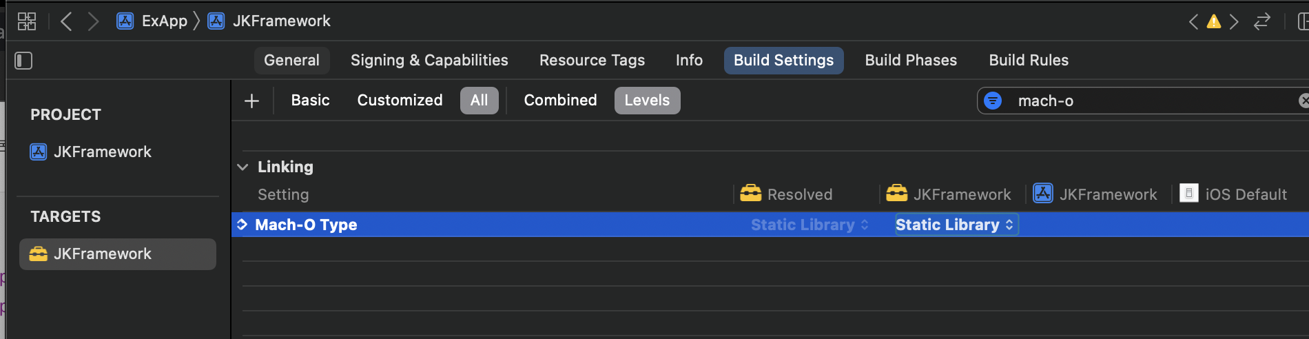 - 추가한 Framework는 디폴트값으로 dynamic library를 갖으므로, static으로 변경하기 위해 mach-o 변경