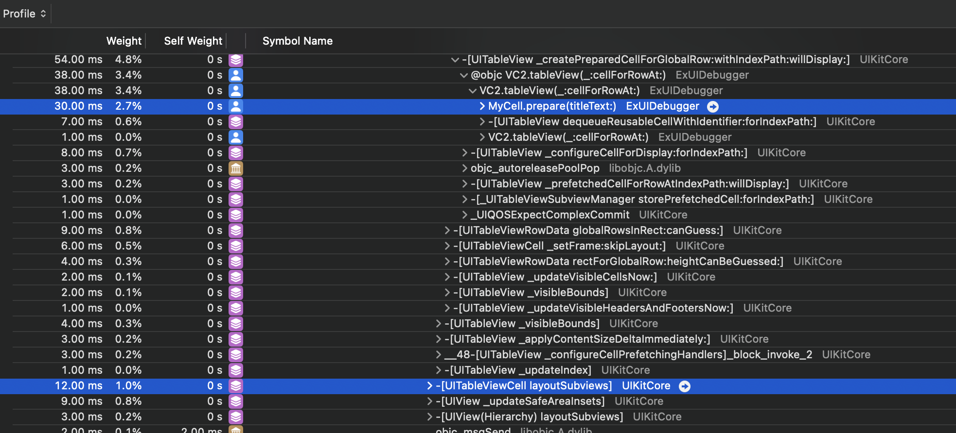 - 밑에 layoutSubviews인 곳도 12ms나 차지하고 있으므로 이 부분도 체크