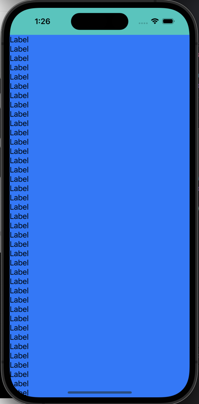 - 예제에 앞서, UIScrollView의 background 색상을 blue, UIStackView를 green로 설정