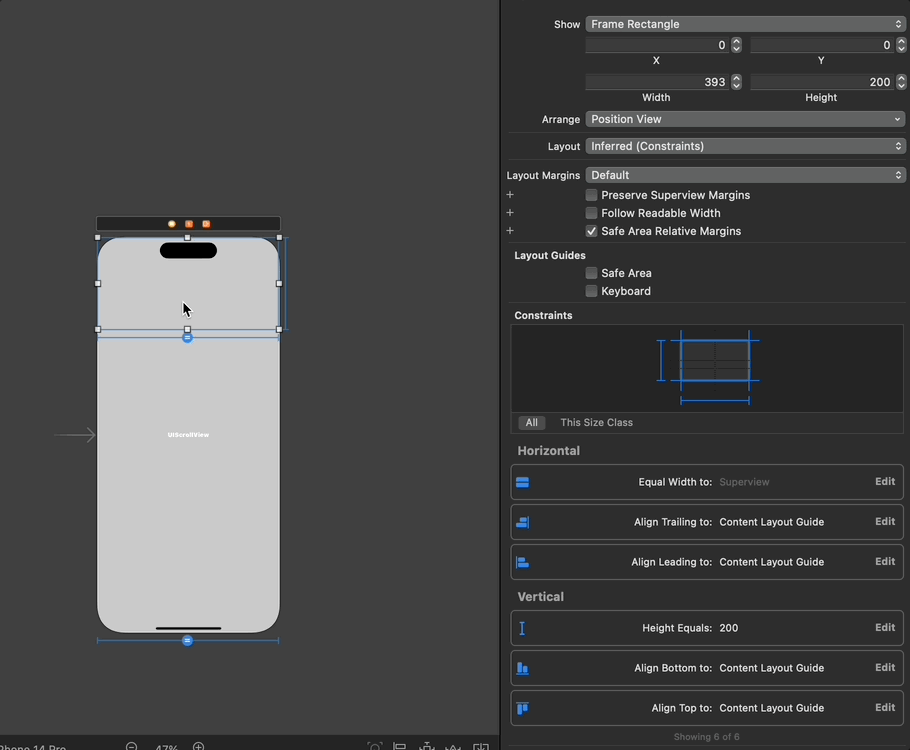 - frame layout guide는 UIScrollView를 잡고 constraint 시킬 때, 그 constraint가 frame layout guide로 적용 (동일한것)
