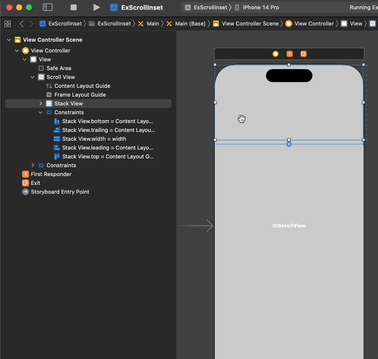1) UIScrollView를 추가하면 frame layout guide와 content layout guide가 존재