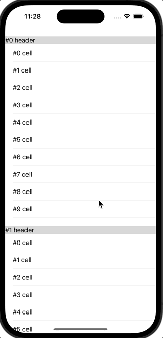 - 보통 section이 고정되지 않게끔 구현해야하기 때문에 grouped 스타일을 많이 사용