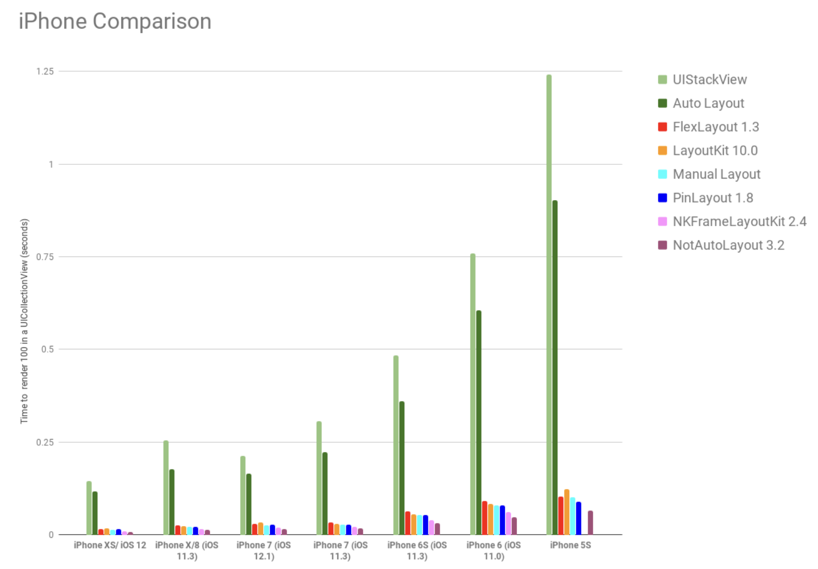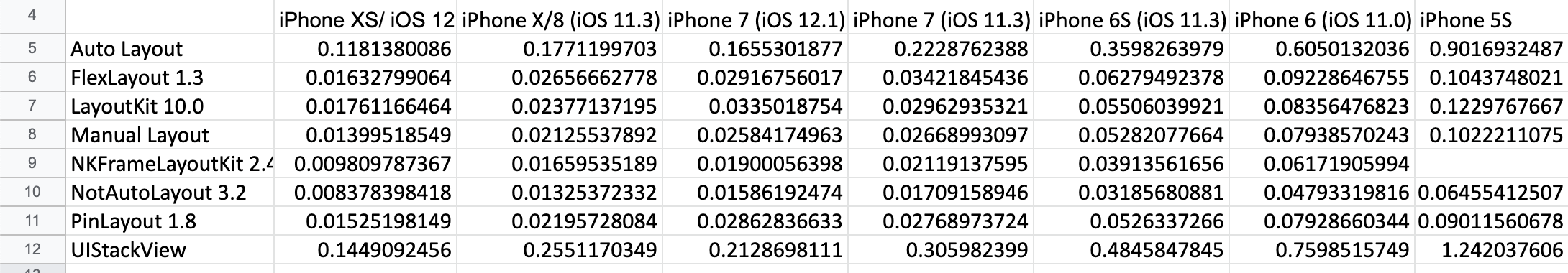 - UIKit에서 제공하는 UIStackView와 Auto Layout의 퍼포먼스가 가장 안좋다는 것을 확인