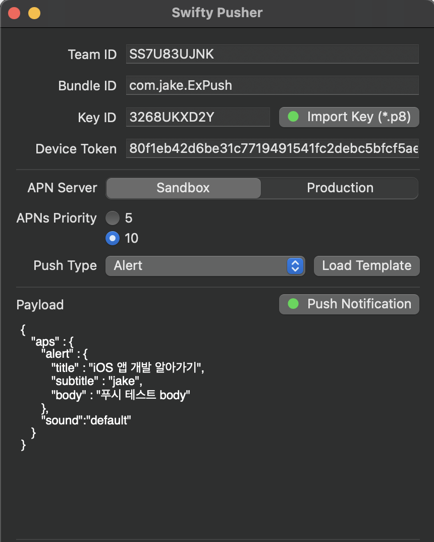 - APNs 푸시를 발송하는 테스트 앱 Swifty Pusher 설치