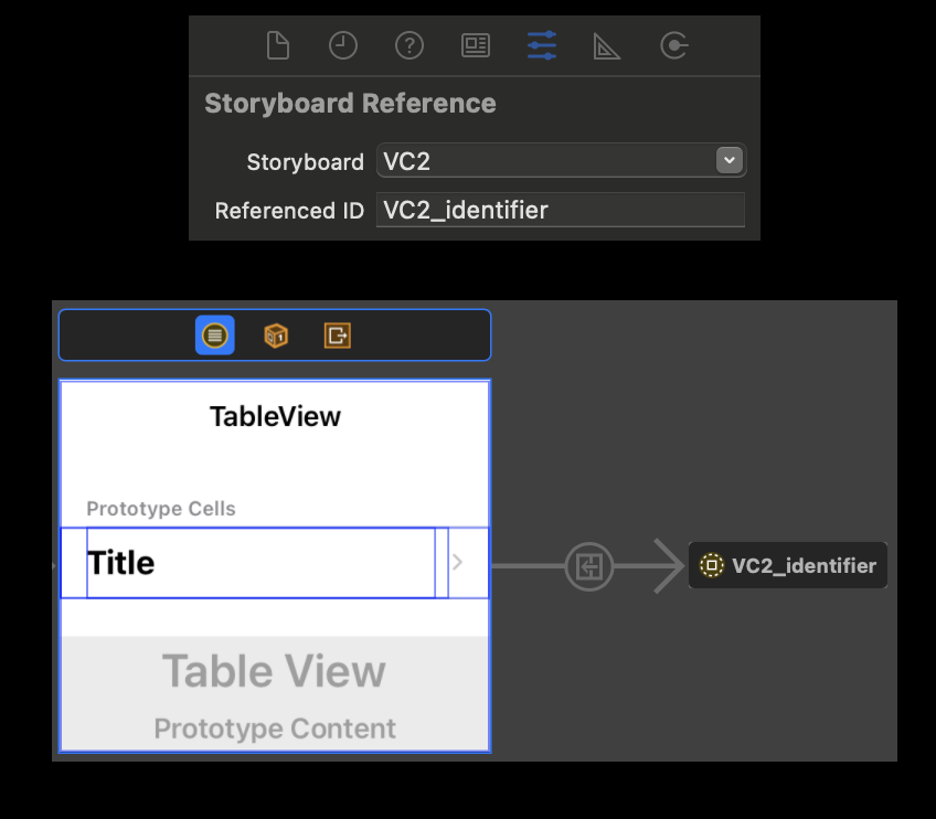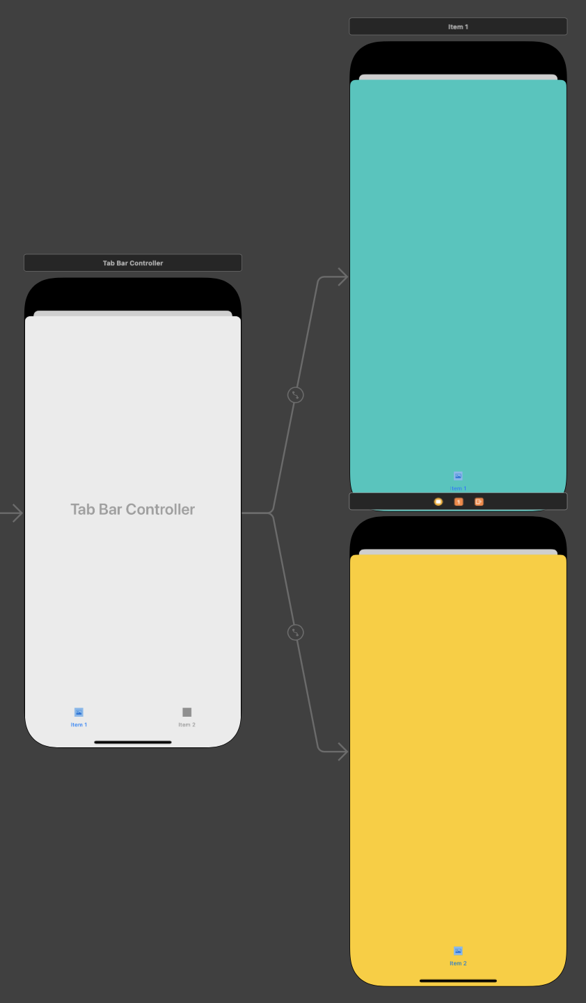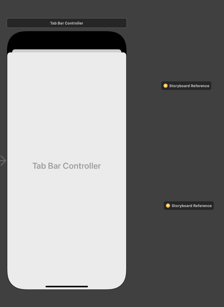 - 아래 Tab Bar Controller안에 있는 UIViewController 2개를 별도의 storyboard 파일로 나누고 참조하도록 구현