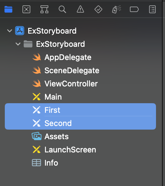 - 위 Storyboard에서 참조될 UIViewController를 위해, Storyboard 파일 2개 생성