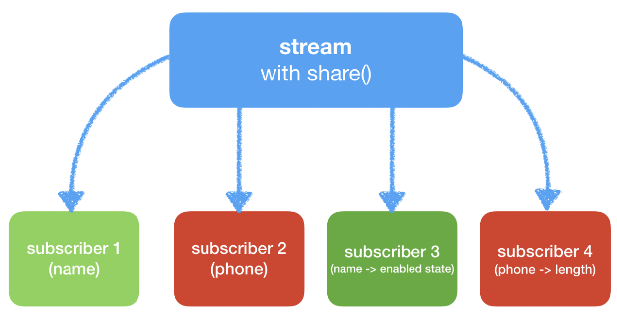 .share() // subscriber들에게 스트림의 자원들을 공유